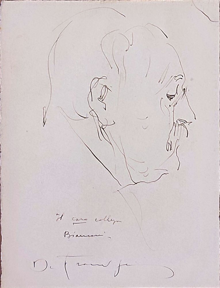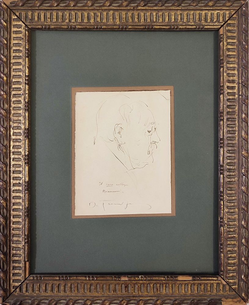 Disegno china su carta. In basso sul fronte presente dedica. Firmato in basso al centro. Con cornice.