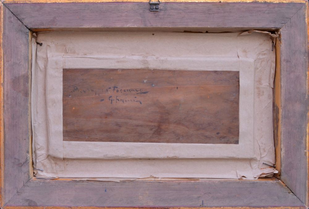 Olio su tavoletta. Titolato e firmato al verso. Con cornice.