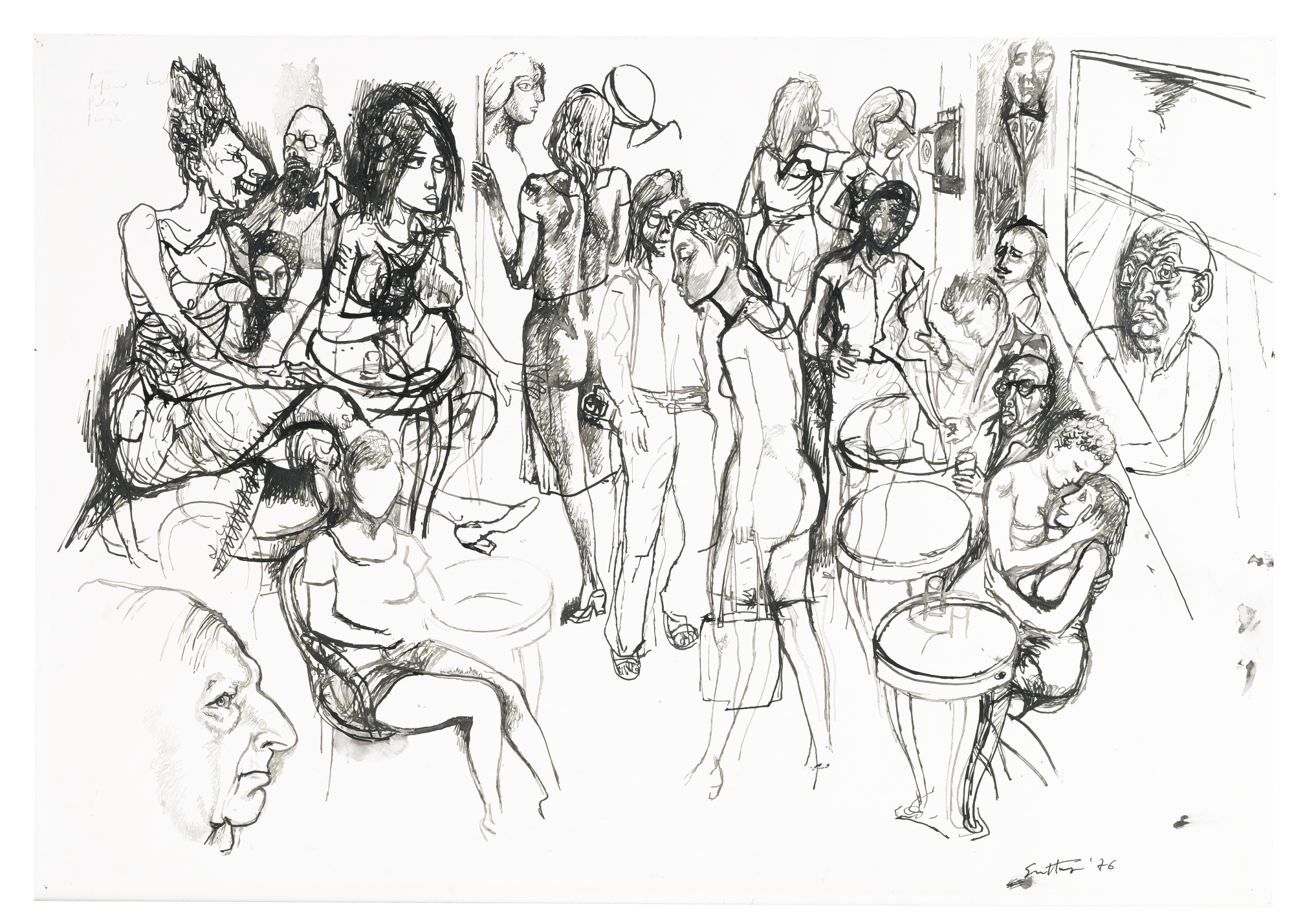 RENATO GUTTUSO 1912-1987 CAFÉ DEL GRECO signed and dated 1976, ink on paper...