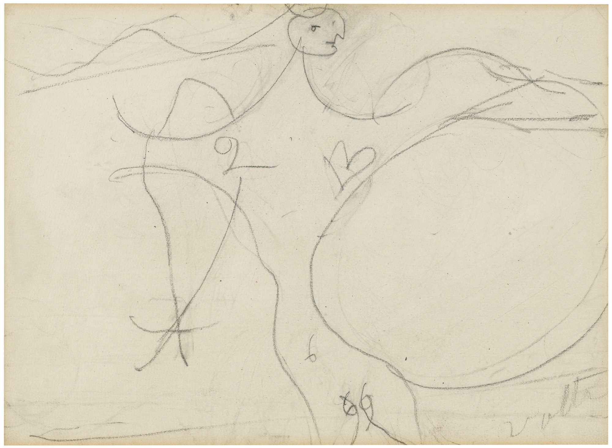 OSVALDO LICINI 1894 - 1958 ANGELO RIBELLE pencil on paper (recto and verso). Executed in 1951 matita su carta (recto e verso) cm 33x24 Eseguito nel 1951 PROVENANCE Galleria Vismara, Milano Galleria Zonca, Milano Ivi acquistato dall'attuale proprietario LITERATURE Giovanni Marchiori, I cieli segreti di Osvaldo Licini, Milano 1968, illustrato
