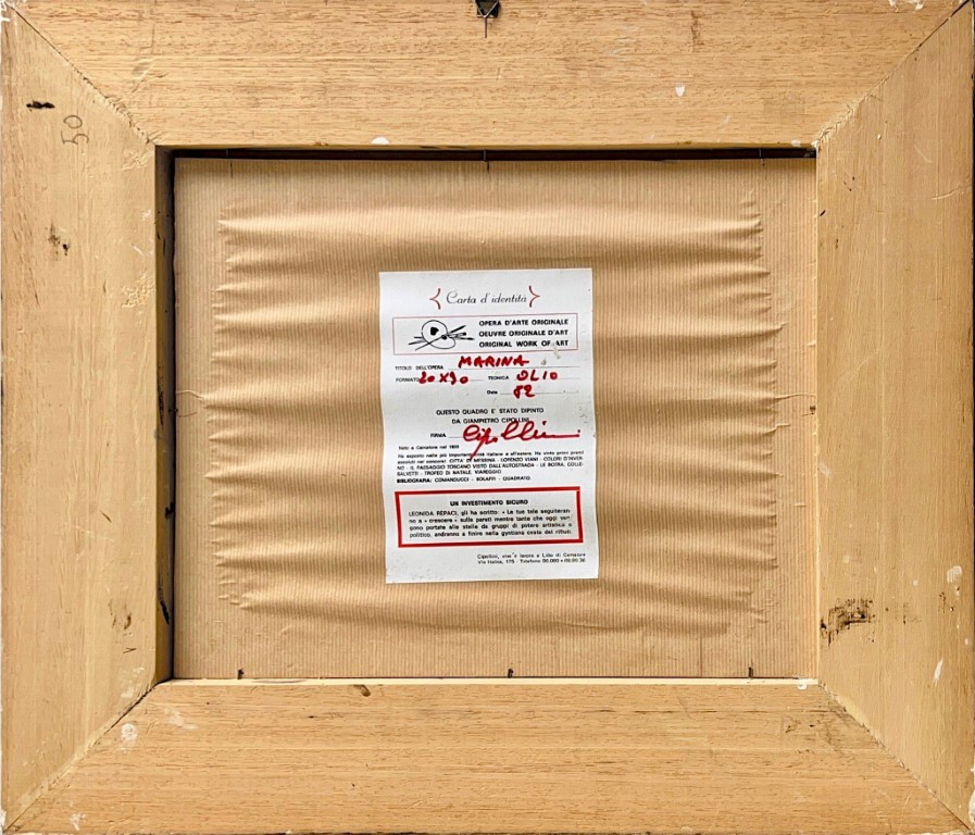 sul retro riporta la 'Carta d'identità' in cui si indica l'autenticità, la firma dell'artista e la data 1982