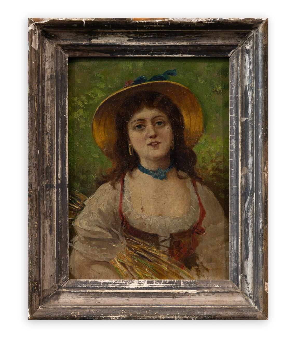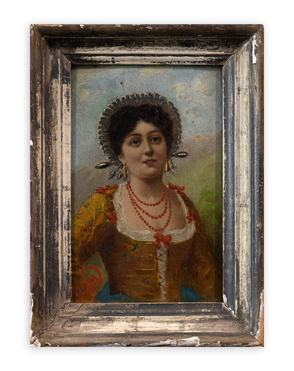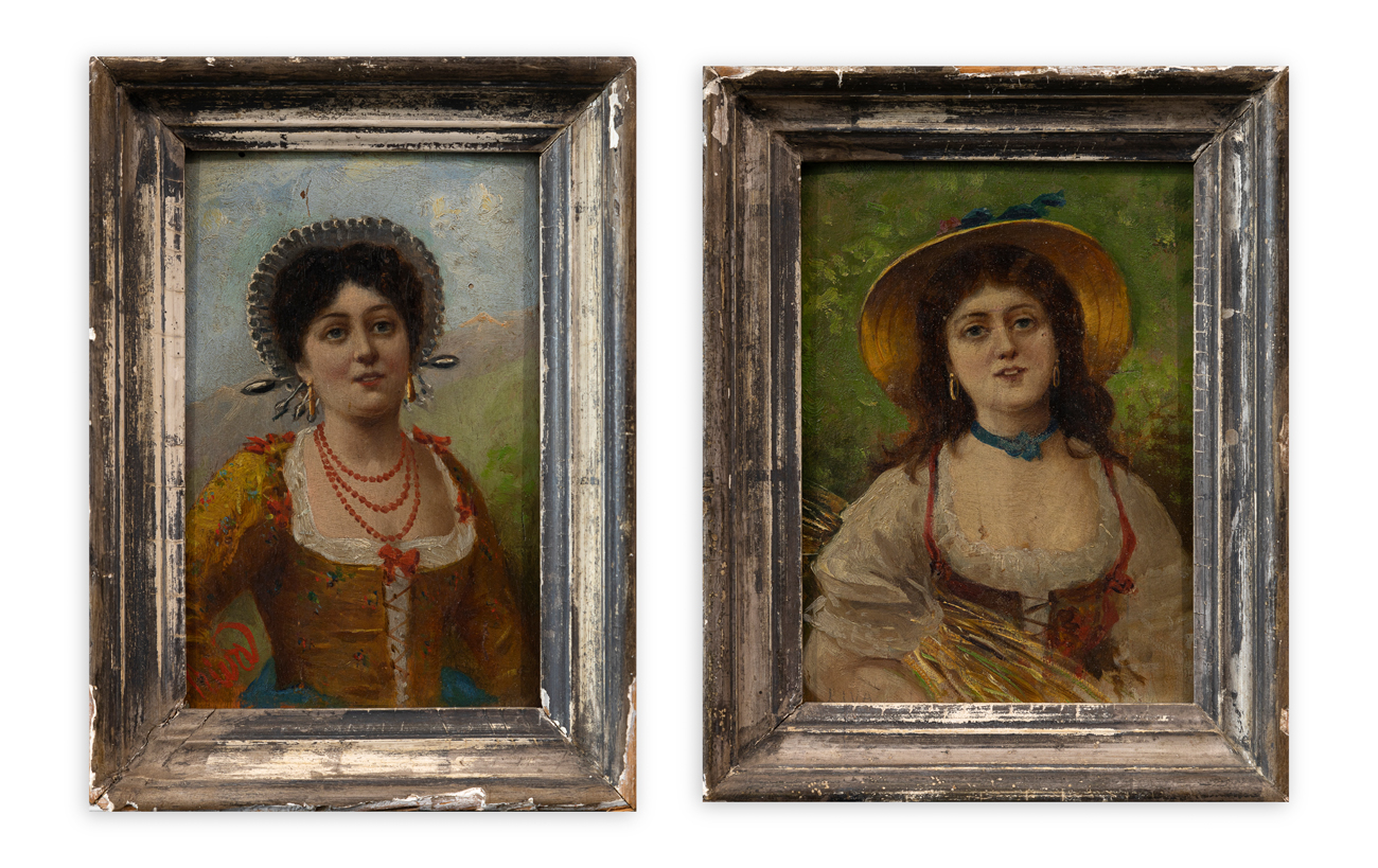 Lotto unico di 2 olii su tavola raffiguranti popolane