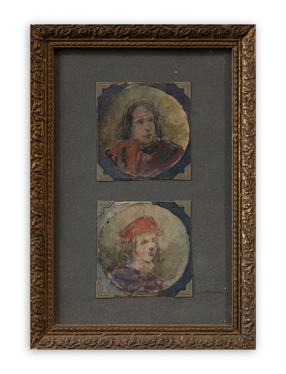 Coppia di acquerelli e matite su carta