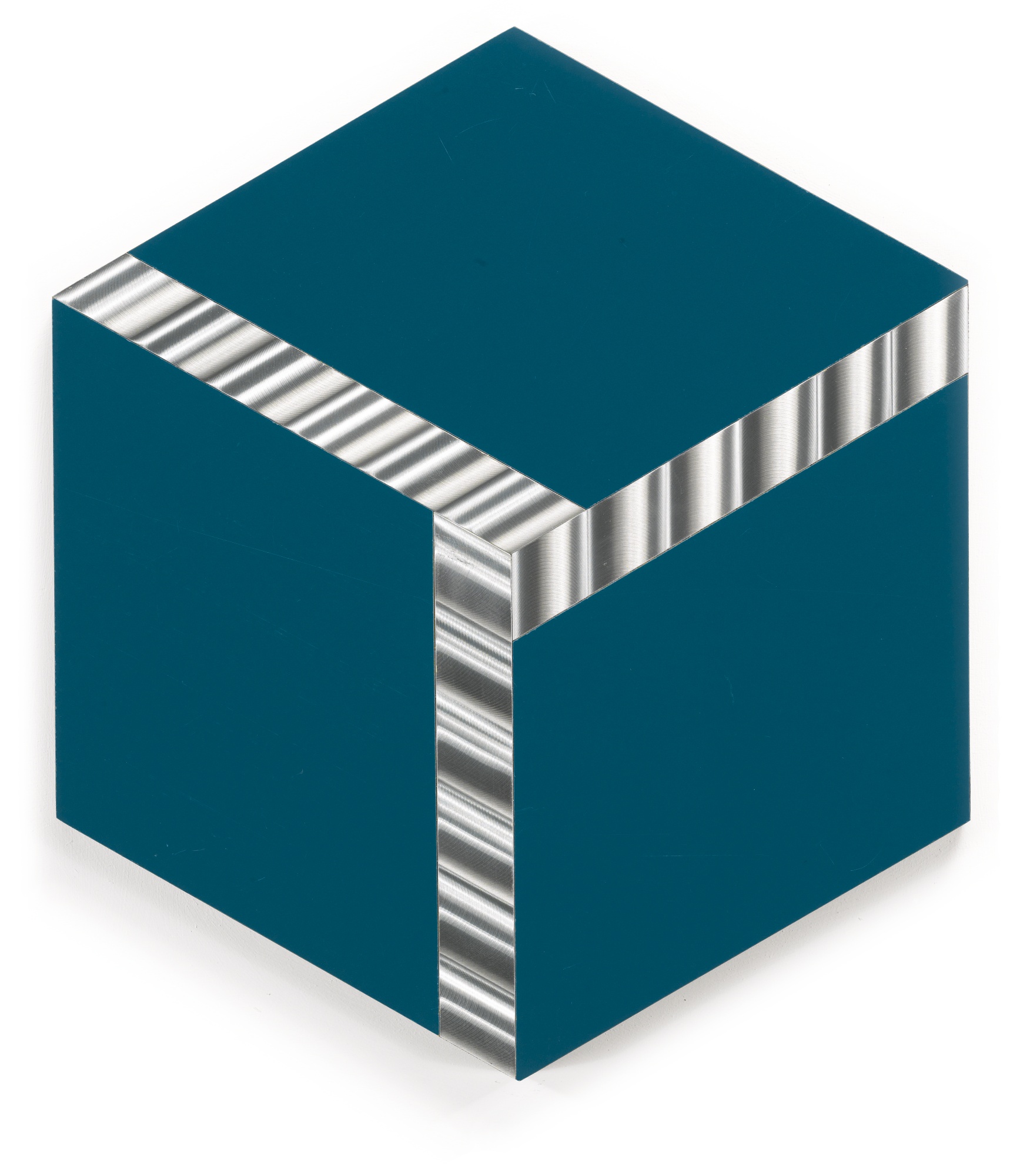 GETULIO ALVIANI N. 1939 CUBO VIRTUALE SU BLU signed, titled and dated Capodanno 1978/9 on the reverse, aluminium and laminated plastic firmato, intitolato e datato Capodanno 1978/9 sul retro alluminio e laminato cm 42x36 L'opera è accompagnata da certificato su fotografia rilasciato dall'artista PROVENANCE Orler Galleria d'Arte, Favaro Veneto