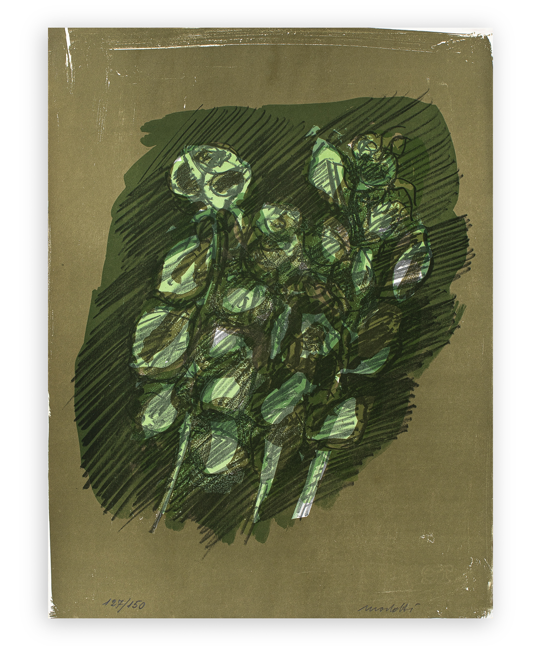 Firma e numerazione (Esemplari 127/150) a matita al fronte