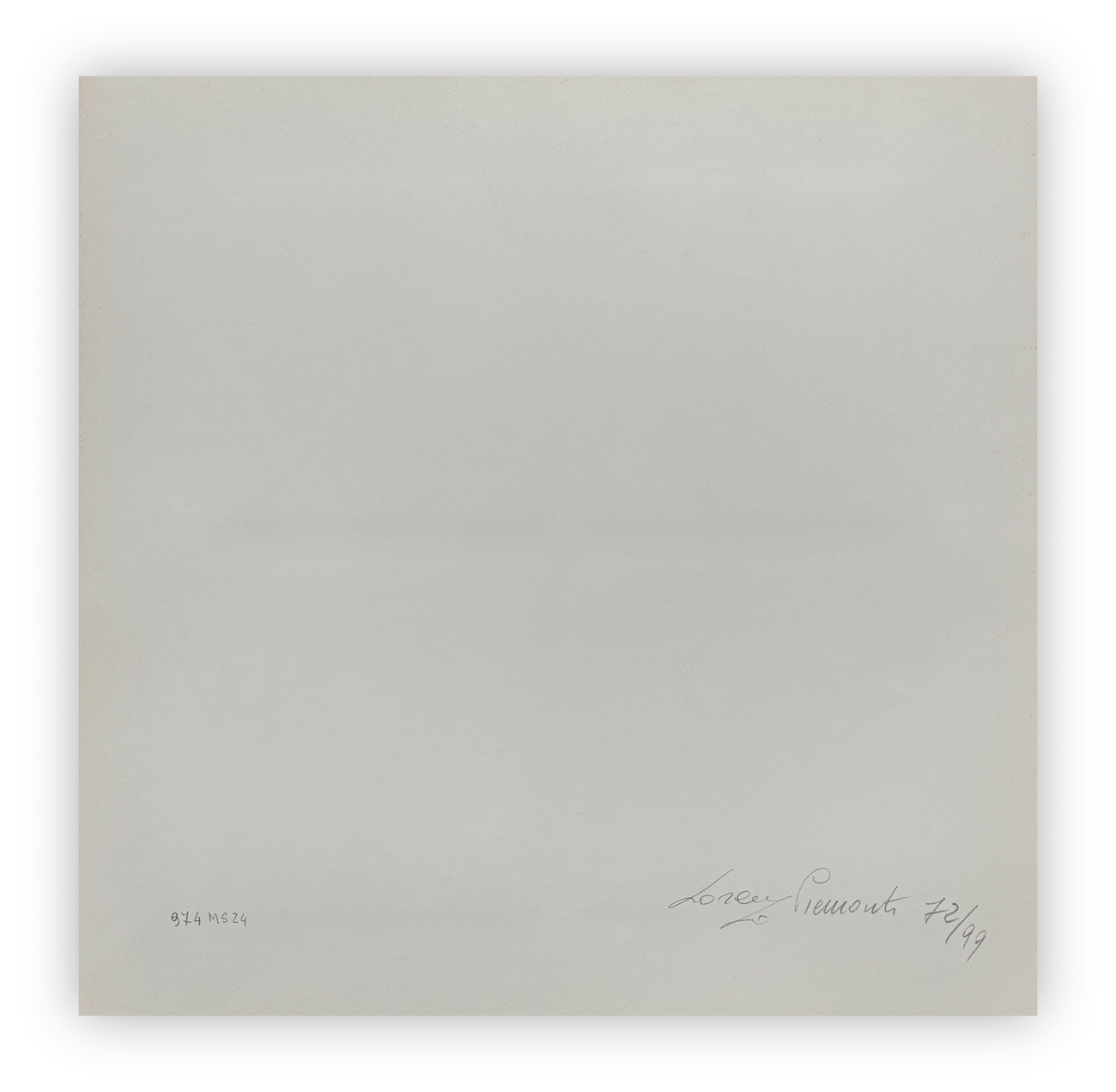 Firma, datazione e numerazione (Esemplare 56/99) a matita al retro