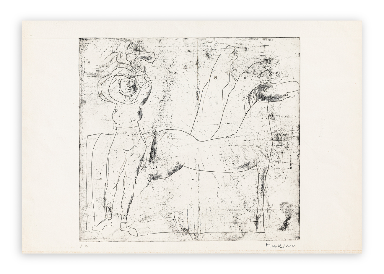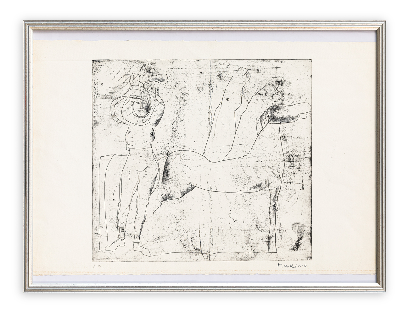 Tiratura postuma effettuata dalla figlia Marina Marini, come specificato nell'impressione apposta al verso 'This is an original colour etching by Marino Marini. The stamp bearing the specimen of his signature affixed by myself warrants the work and the edition Marina Marini' controfirmata a matita