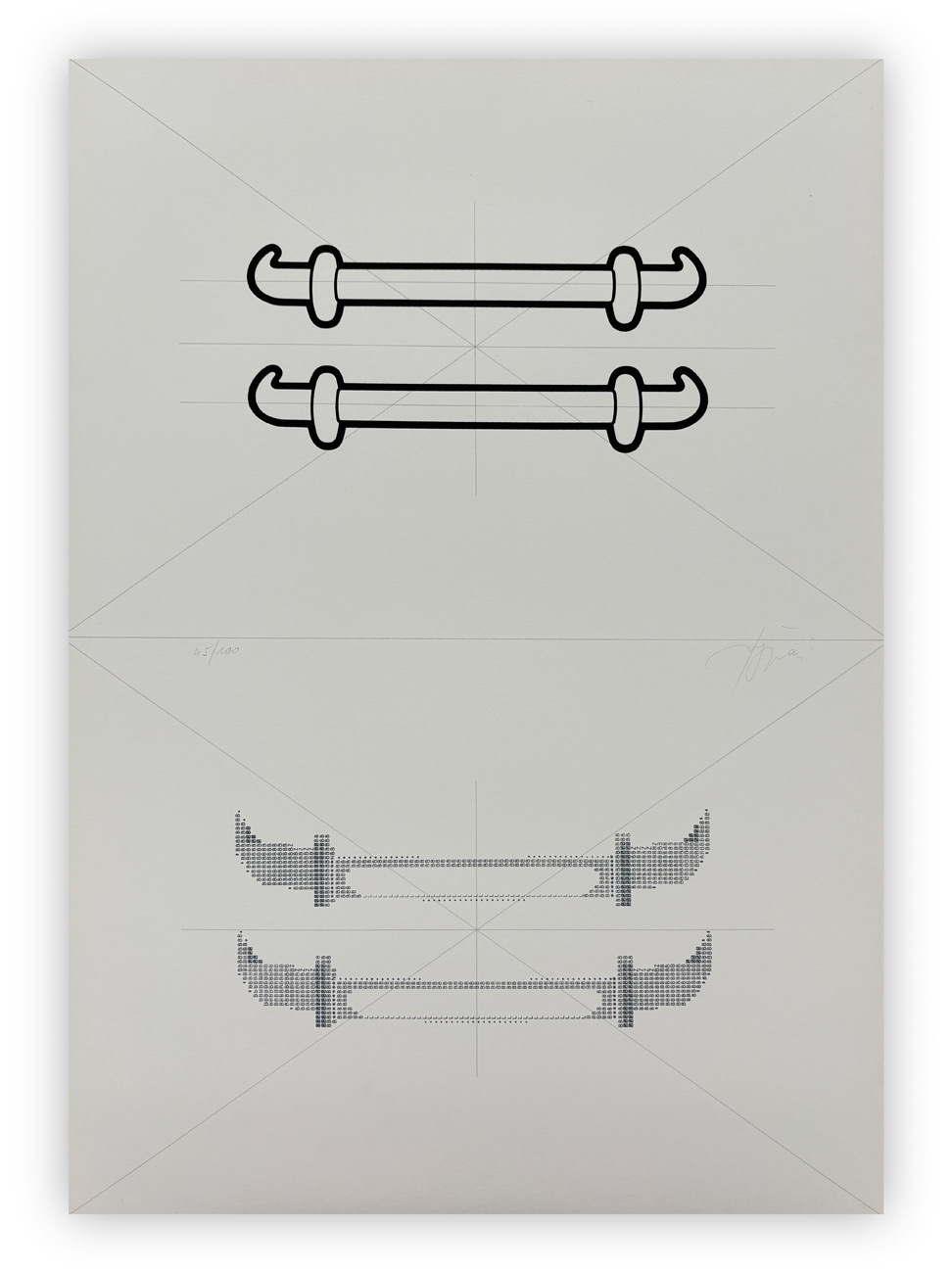 Firma e numerazione (Esemplare 45/100) a matita al fronte