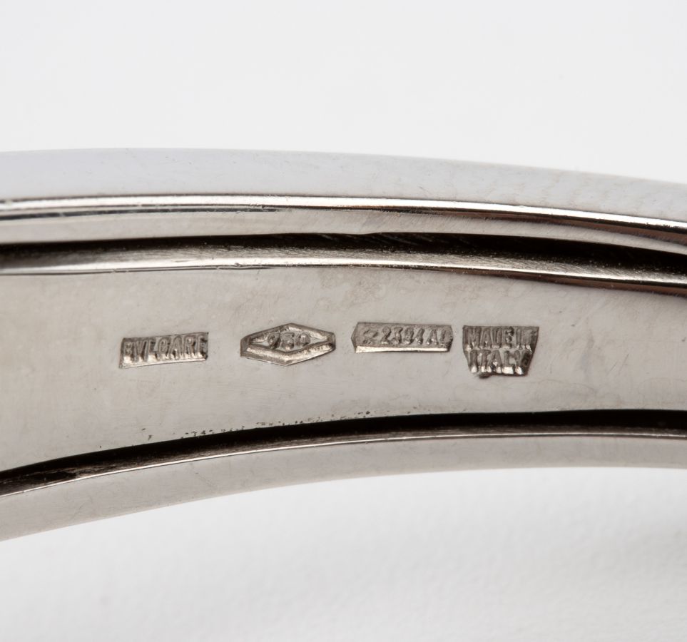 Punzonato "750 - 2394 AL - Made in Italy - Bulgari". Diametri interni: 5 x 5,5 cm. Peso: 36 g.