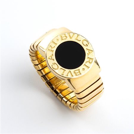in oro giallo 18k, incastonato con lastra di onice. Firmato BVLGARI.