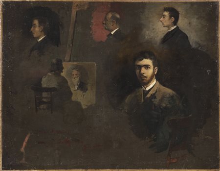 ARTISTA DEL XIX SECOLO Studio di volti. Olio su tela . Cm 45,00 x 35,00. Riporta la firma "T Signorini" in basso a sinistra. Al retro "Opera autentica originale di Telemaco Signorini, Carlo Siviero."
