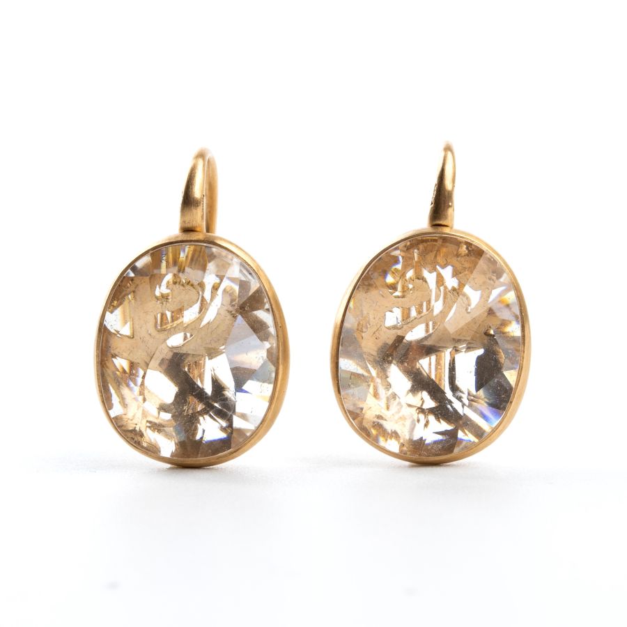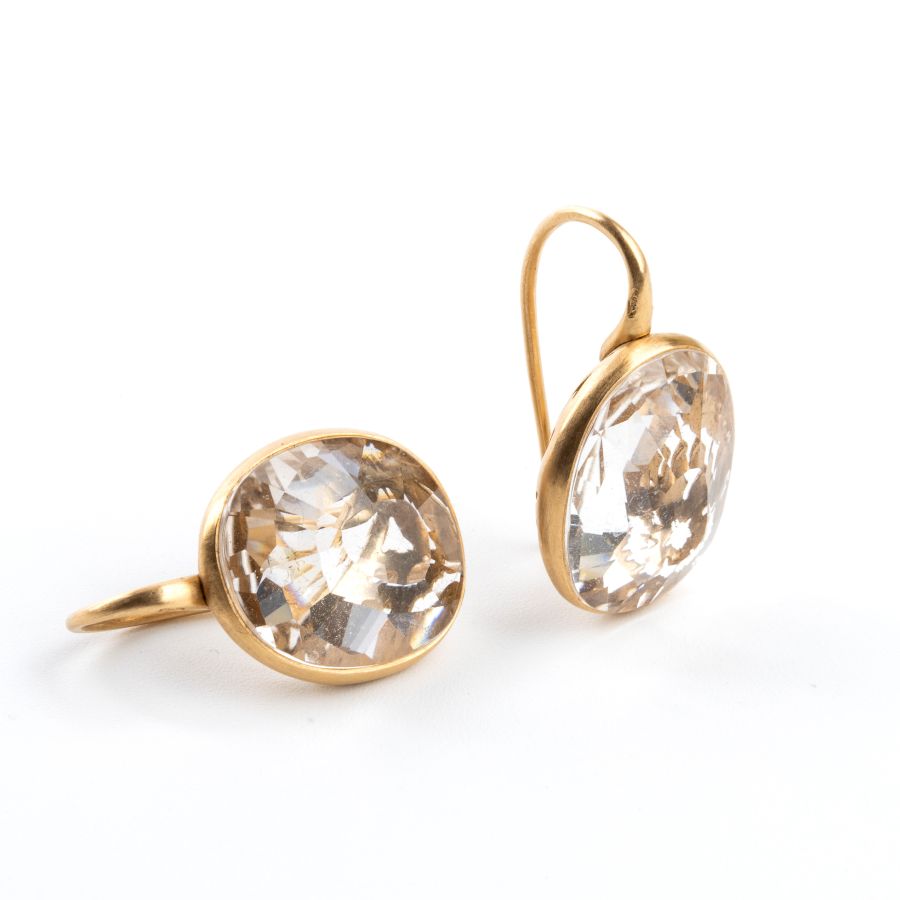 in oro giallo 18k satinato, ciascuno incastonato con cristallo di rocca. Firmati POMELLATO.