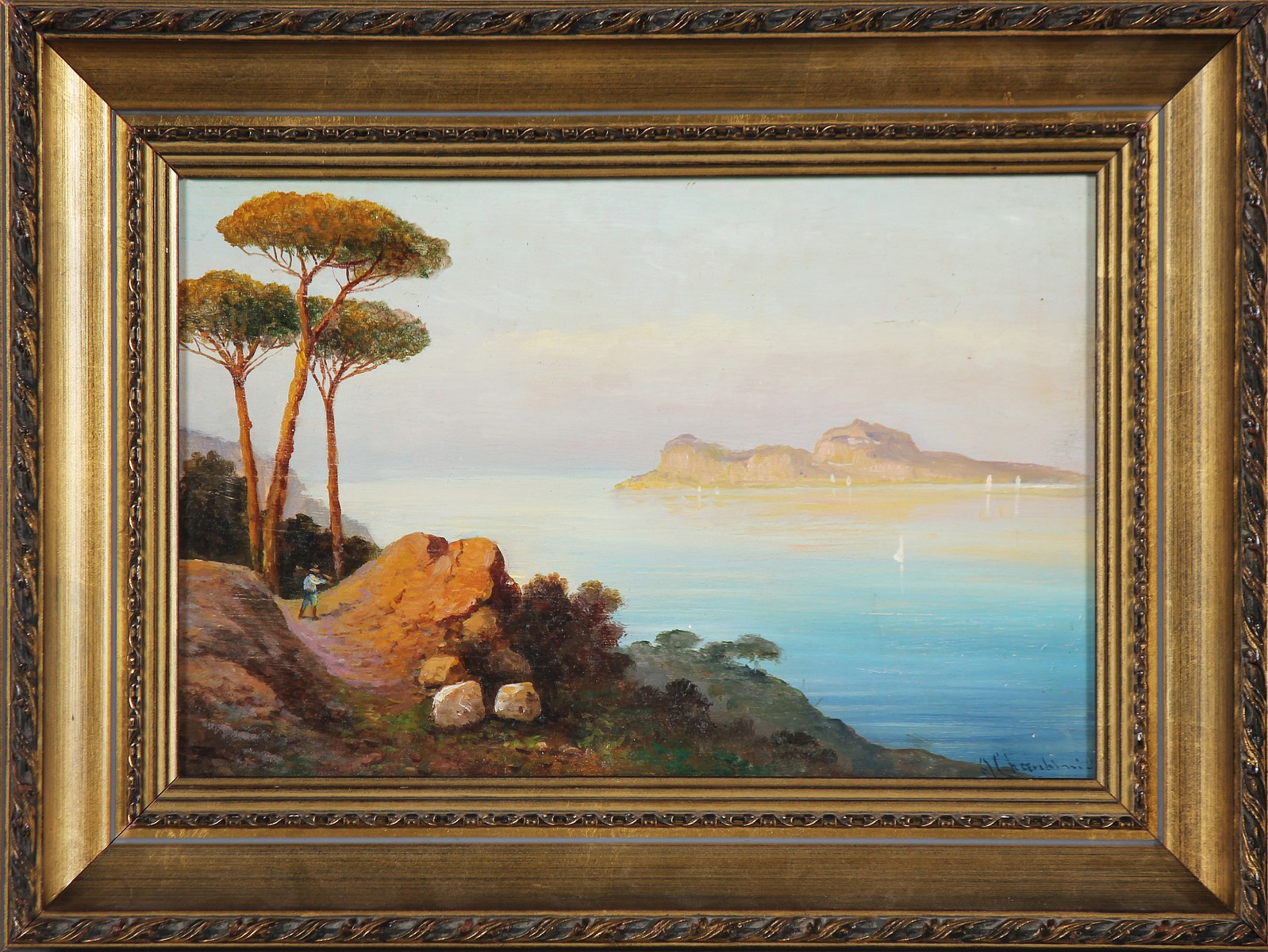 CHERUBINI ANDREA (1831 - 1905) Marina di Capri. Olio su tavola. Cm 30,50 x 20,00. Firmato in basso a destra. Cornice presente