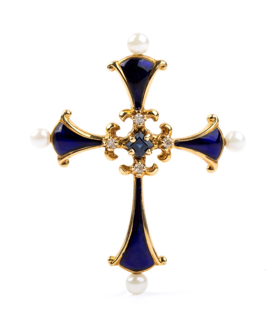 Franklin Mint Collection Pendente a croce in oro, diamanti e smalti