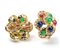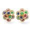 Paio di orecchini in oro giallo con diamanti e cabochon di smeraldi, zaffiri e rubini
