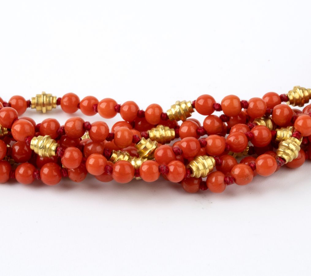 Girocollo a torsade in corallo Mediterraneo ed oro