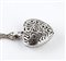 scintillante schiera di piccoli diamanti rotondi taglio brillante, per un totale di 4,50 ct, F-G, VVS-VS, incastonati a pavé su un cuore in oro bianco 18k delicatamente bombato, sospeso a una catena a maglia forzatina. Il retro è ornato da un grazioso cuore aperto e da un disegno a volute.
