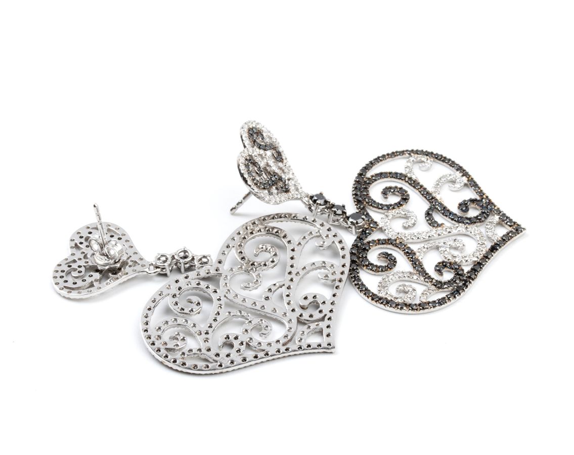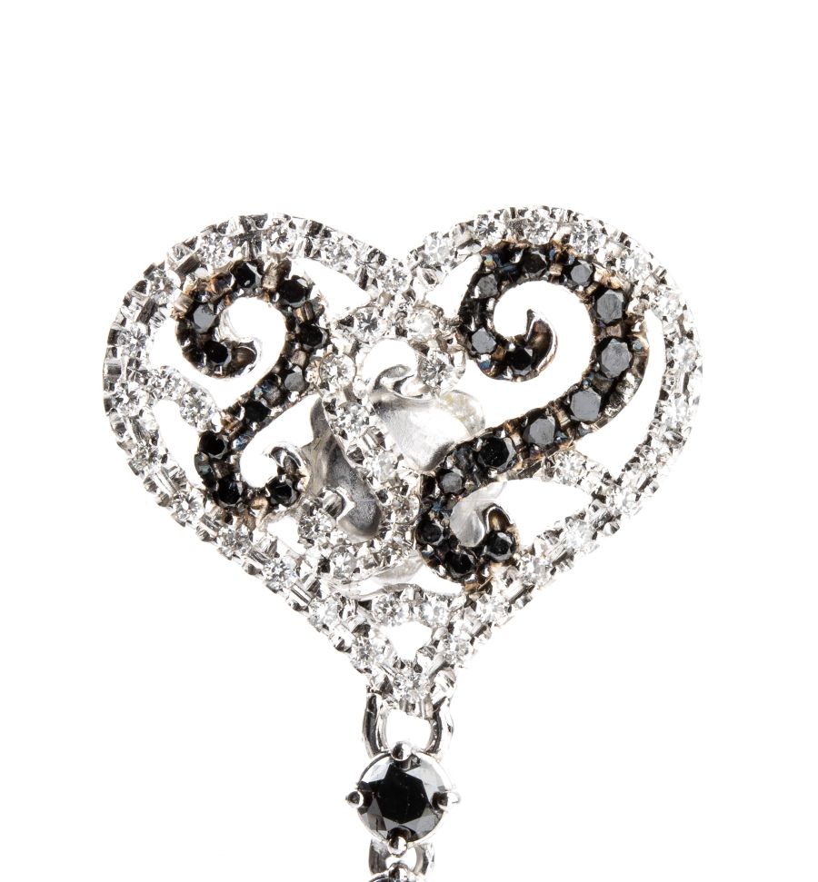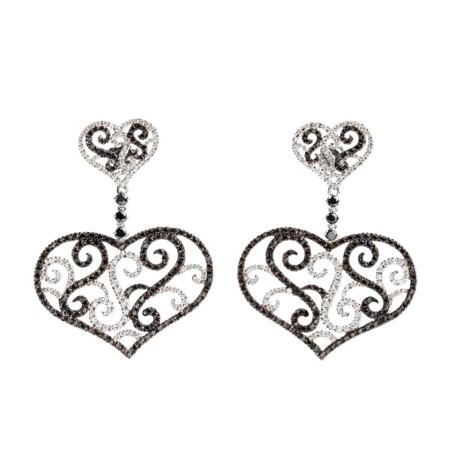 Paio di orecchini con motivi a cuore in paste vitree e moissaniti