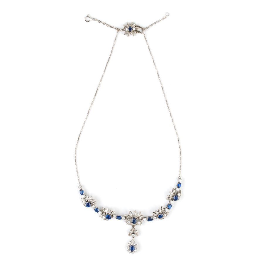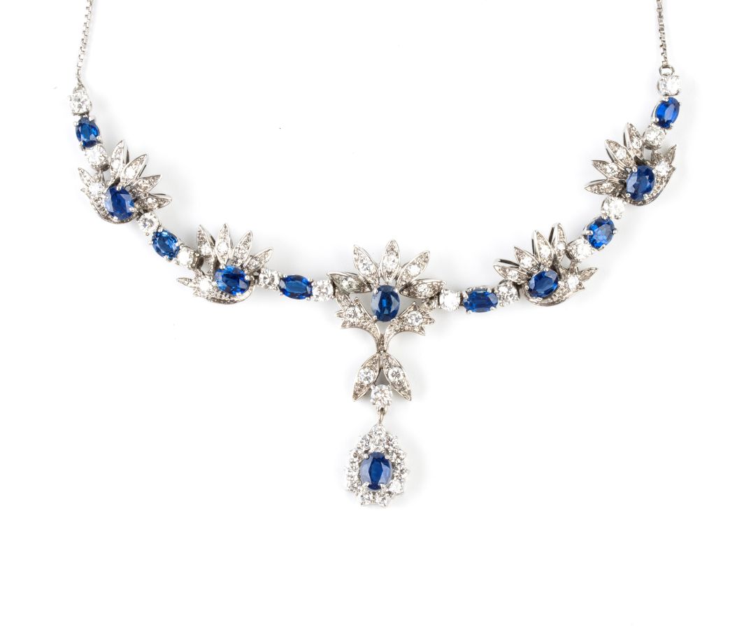 Lotto 93 | Collana floreale in oro con zaffiri e diamanti