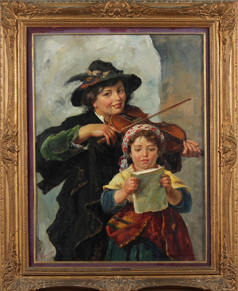 CECCONI EUGENIO (1842 - 1903) Giovani musicisti. Olio su tela . Cm 60,00 x 80,00. Firma in basso a sinistra.
