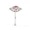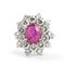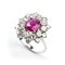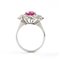 in oro bianco 18k, incastonato con rubino centrale tra doppia cornice di diamanti.