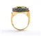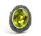 modellato come una fascia in oro giallo 18k, incastonato con grande peridoto ovale contornato da pavè di diamanti blu.