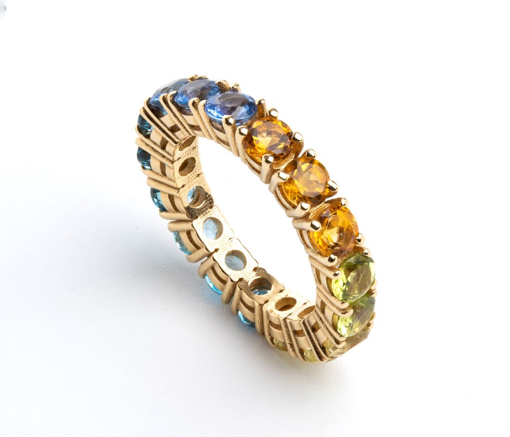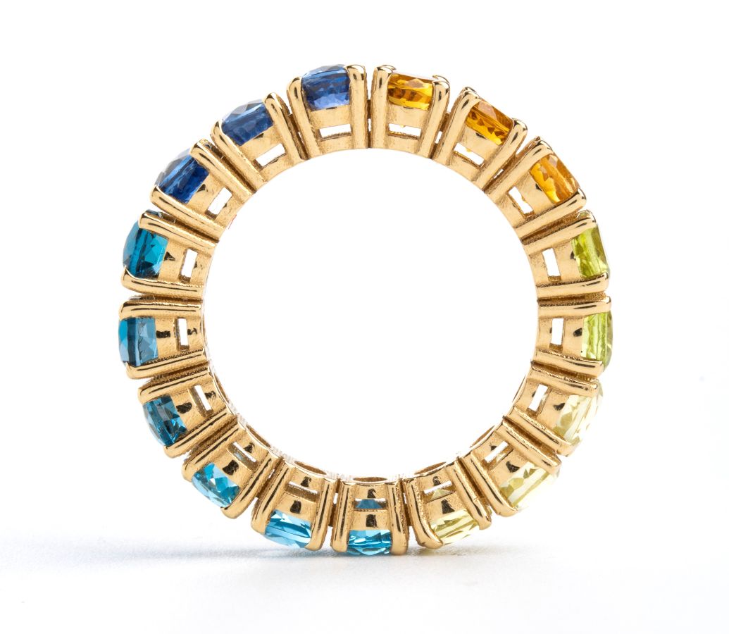 Lotto 134 | Anello Eternity in oro con zaffiri multicolore