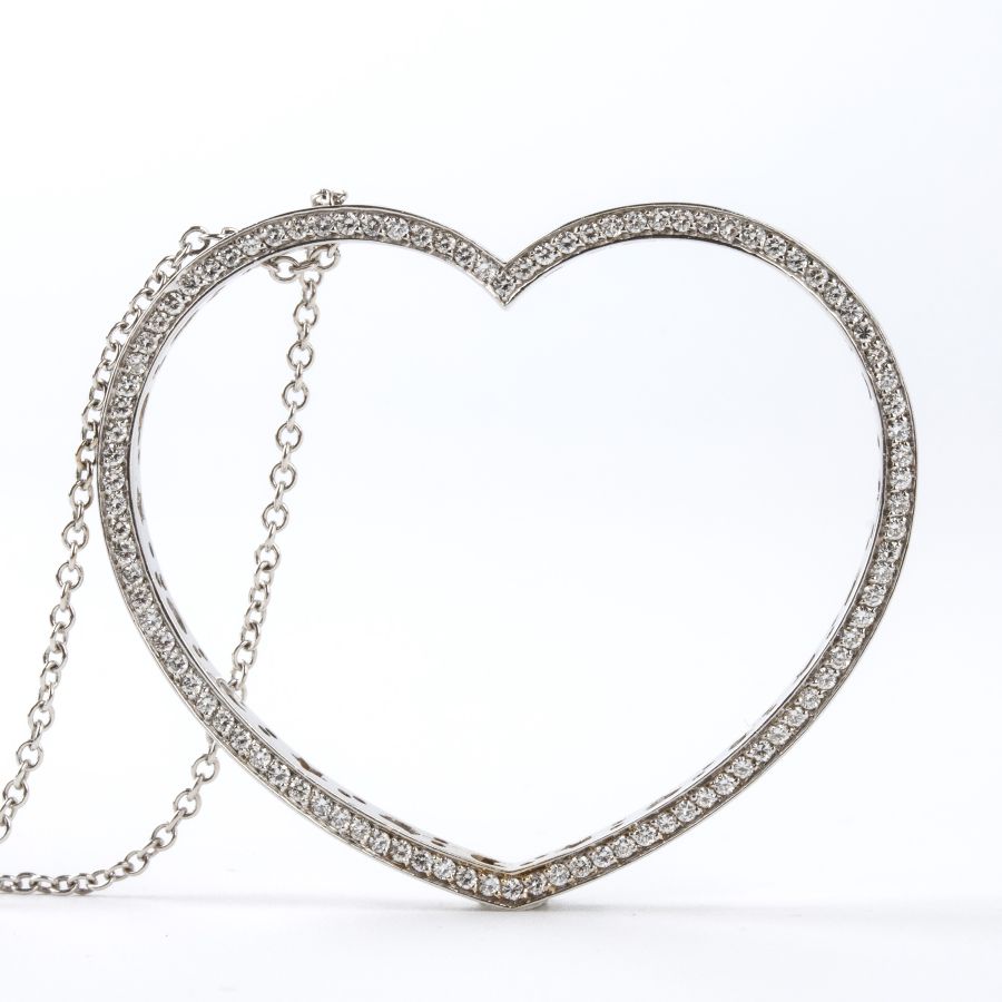 in oro giallo 18k, con catena a maglia forzatina a cui è sospeso un pendente a forma di cuore, decorato con diamanti.