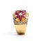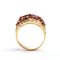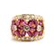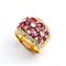 in oro giallo 18k, con tre motivi centrali a fiore in rubini tra profili di diamanti.