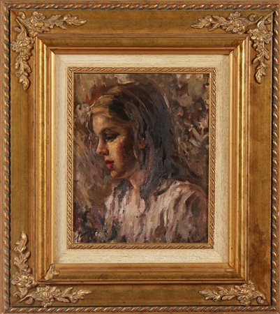 TORO ATTILIO (1892 - 1982) Volto di fanciulla. Olio su tavola. Cm 24,50 x 30,00. Firma in basso a sinstra. Cornice presente