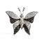 in oro bianco 18k, raffigurante una farfalla dal corpo ed ali decorate con pavè di paste vitree e moissanite nera.