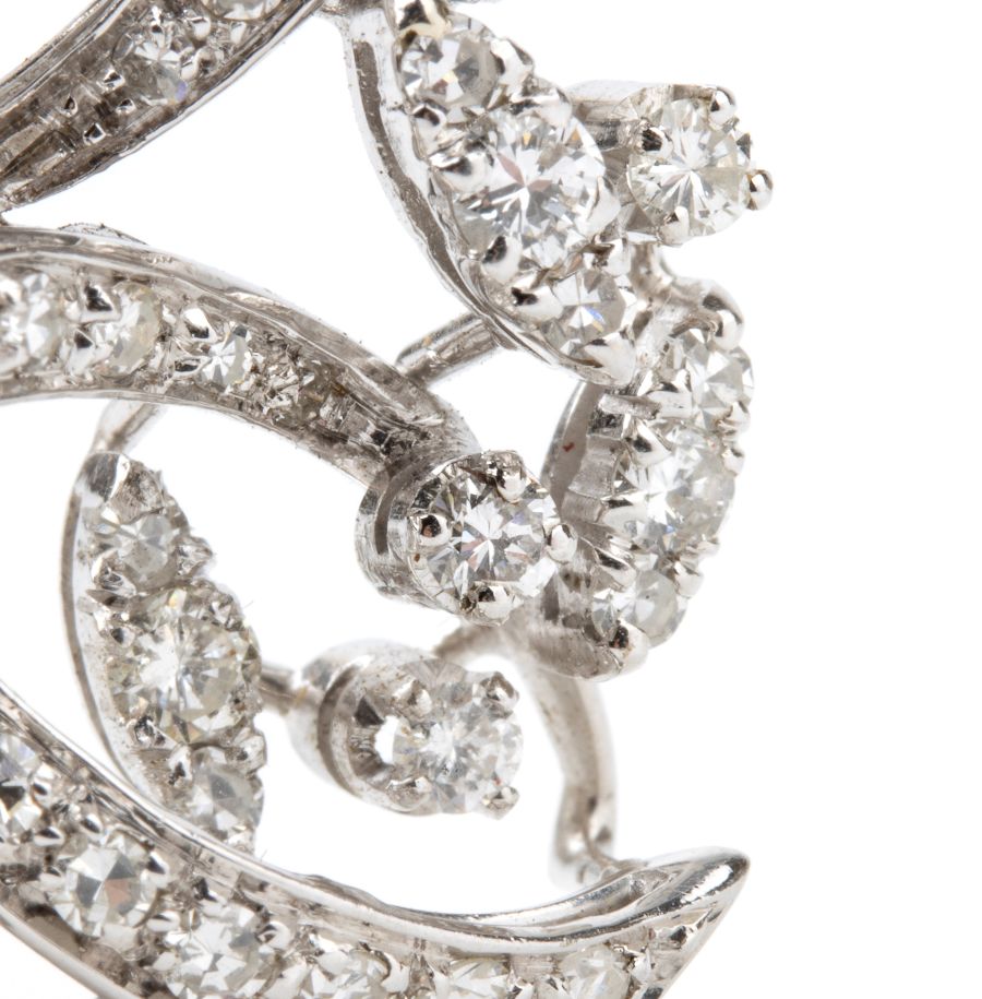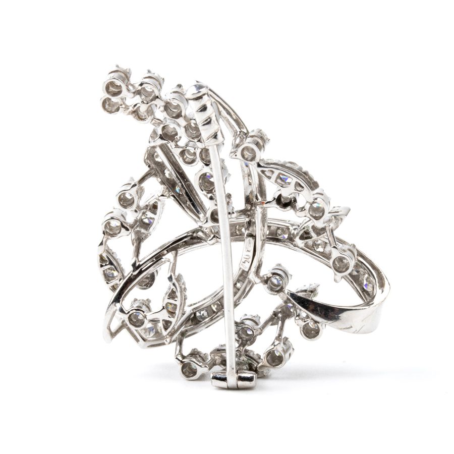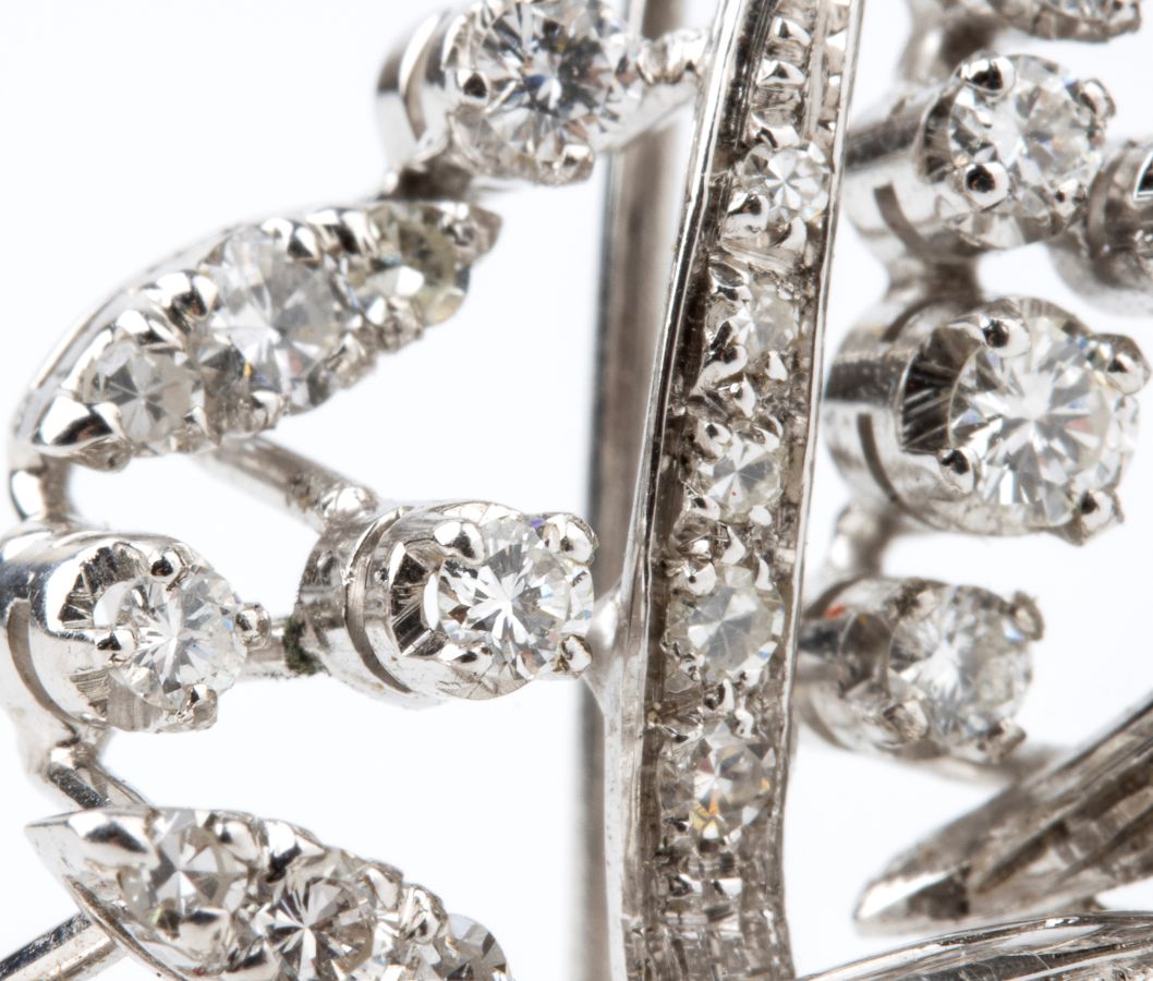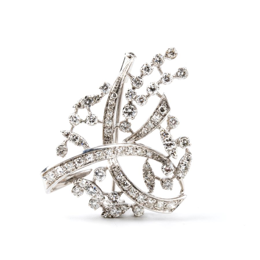 in oro bianco 18k, motivo di steli e nastri in diamanti rotondi, taglio brillante e huit-huit per circa 1.90 ct, F-G, VS-SI.