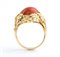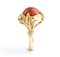incastonato con cabochon di corallo Mediterraneo (corallium rubrum) contornato da motivo di foglie.