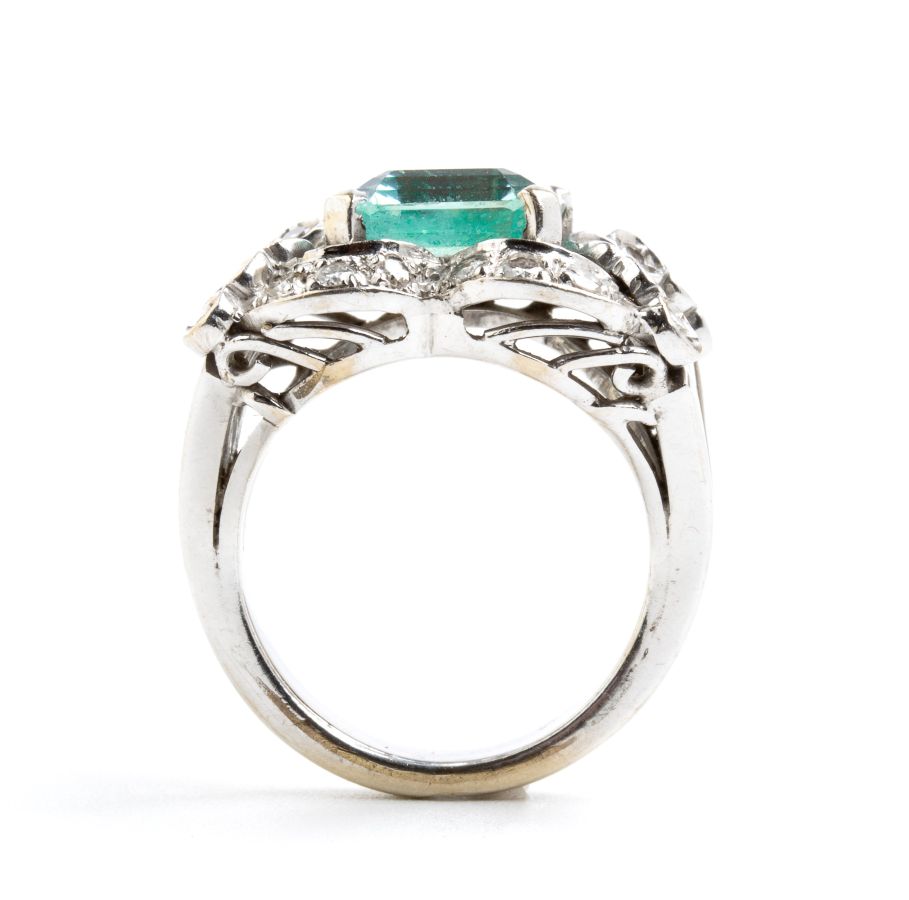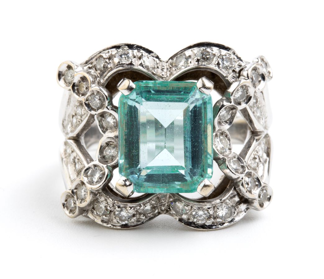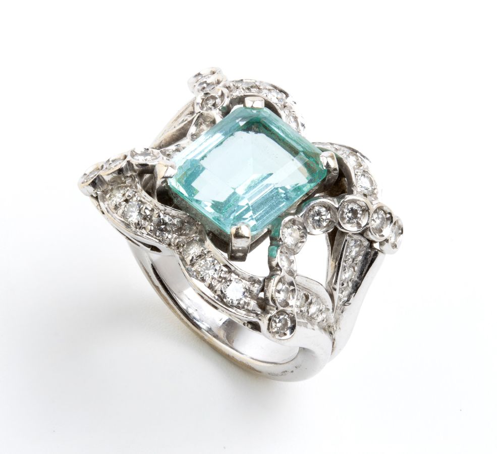 Anello in oro bianco, acquamarina e diamanti
