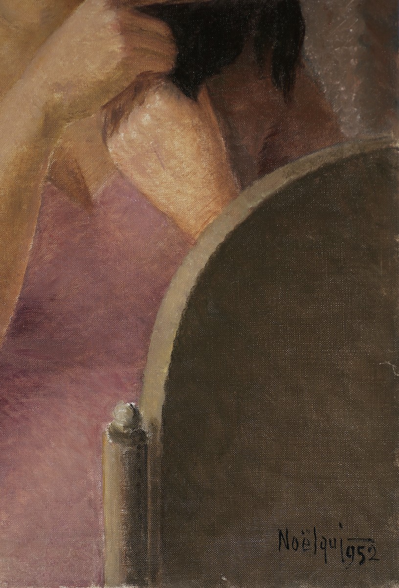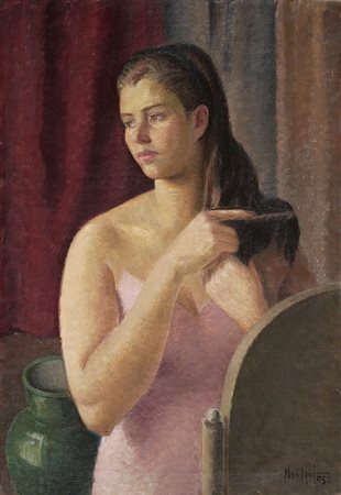 QUINTAVALLE NOEL (1893 - 1975) Ritratto di fanciulla. Olio su tela . Cm 45,00 x 65,00. Firma in basso a destra. Al retro cartiglio a cura della Galleria Mazzoni.