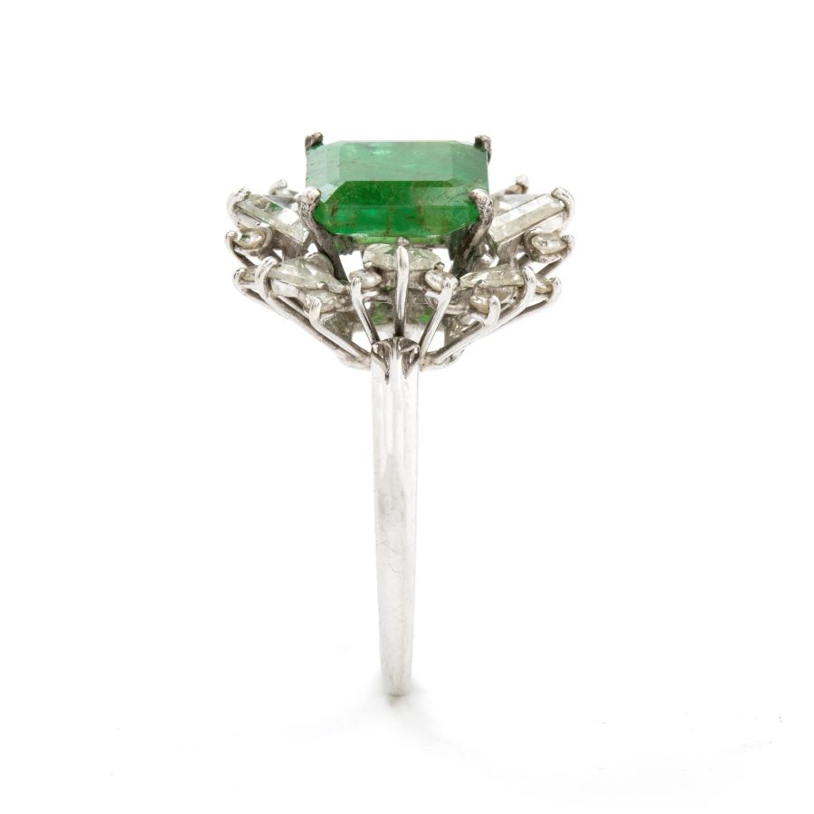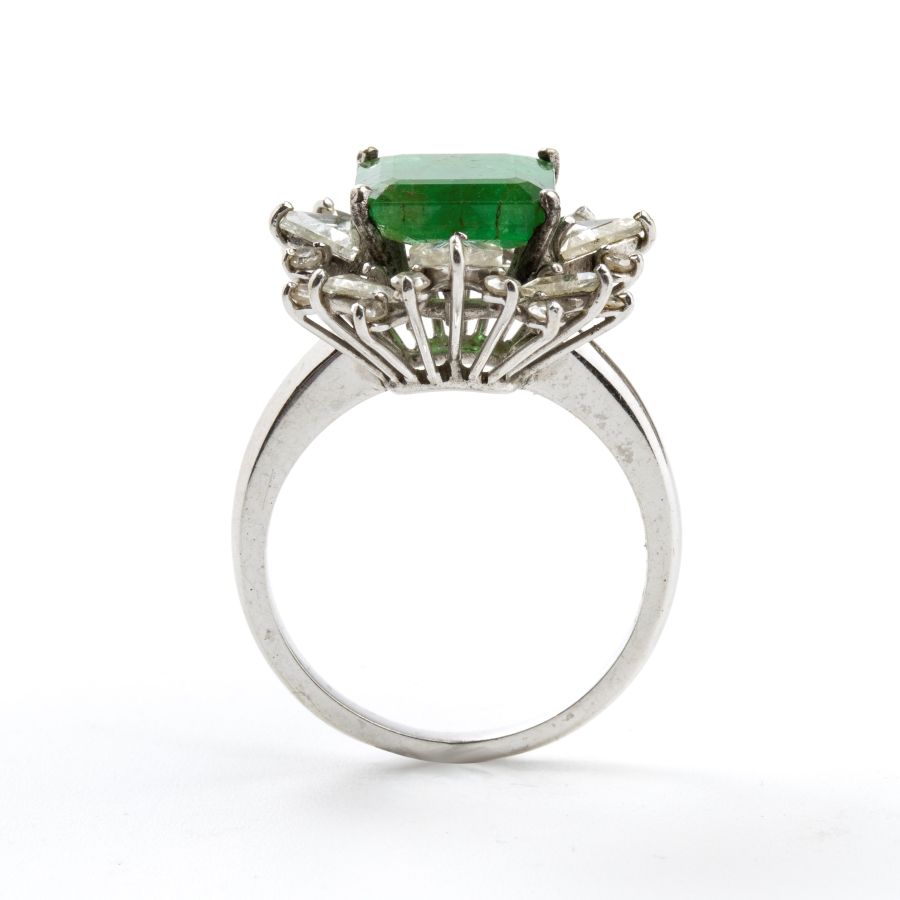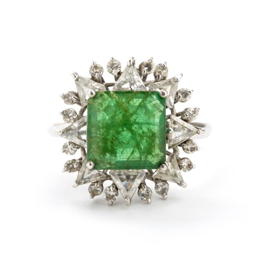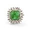 in oro bianco 18k, incastonato con smeraldo incorniciato da diamanti.