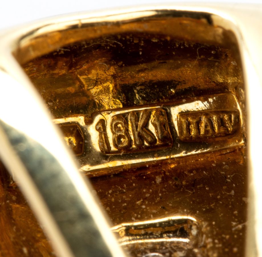 Punzonato "18k - 1932 AL - ITALY". Dimensioni: 4.5 x 3.5 cm. Peso: 17.9 gr.