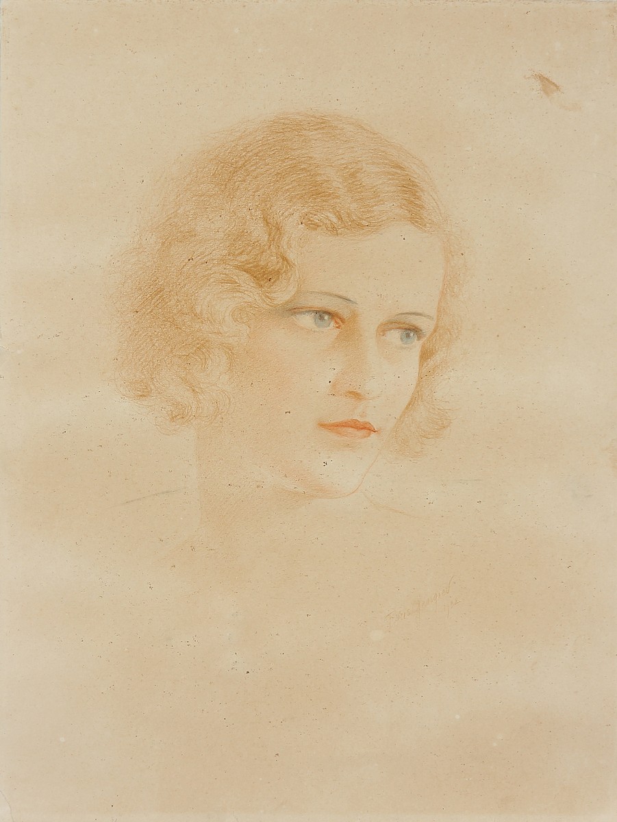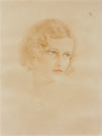 GEORGIEV BORIS (1888 - 1962) Ritratto di fanciulla. 1932. Tecnica mista su carta. Cm 37,50 x 46,00. Firma e anno in basso a destra. Autentica su fotografia a cura di Virginia Giacometti.