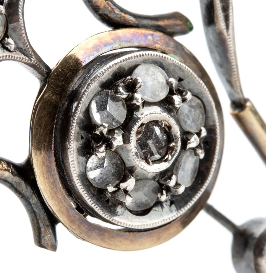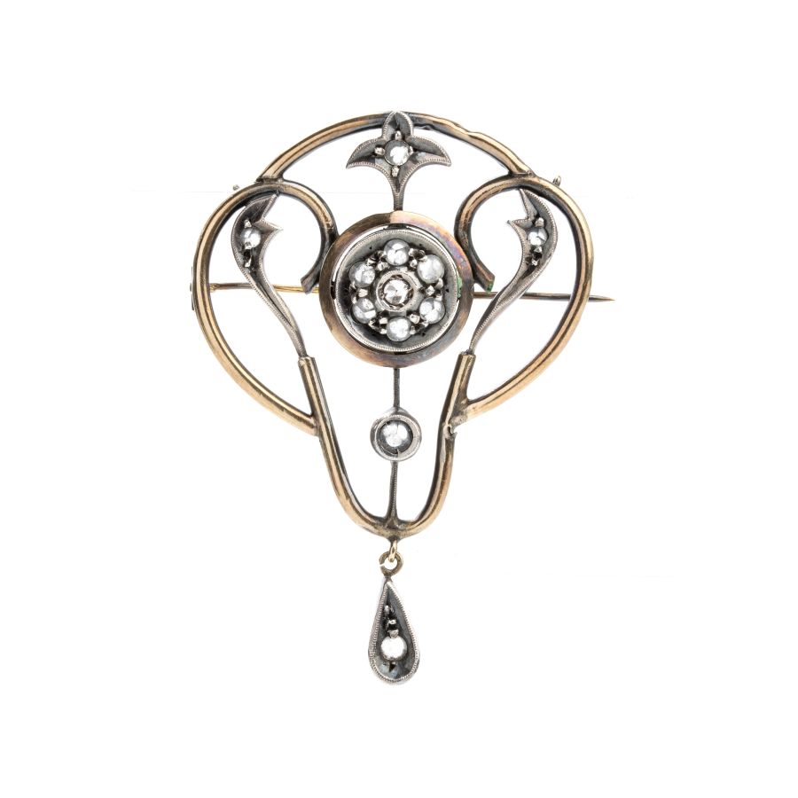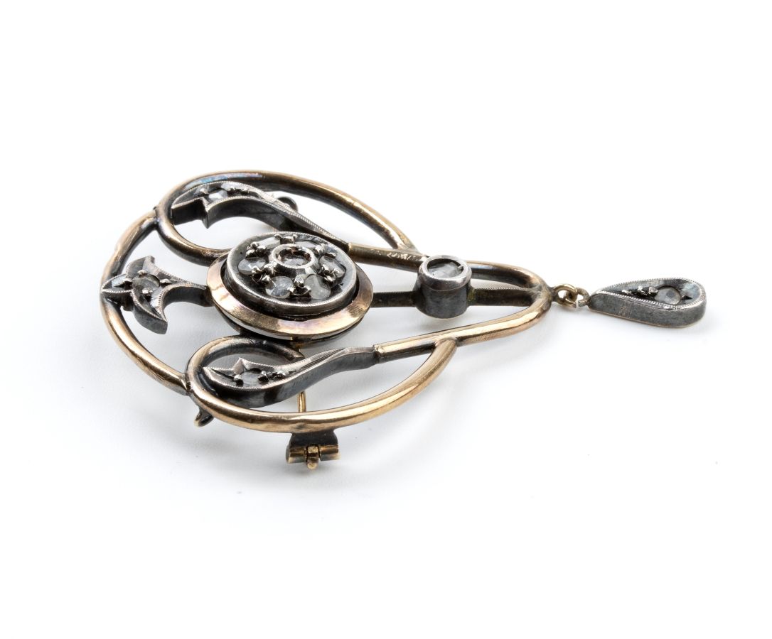 Spilla-pendente in argento, oro e diamanti taglio a rosa fine XIX secolo