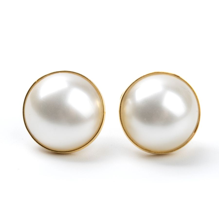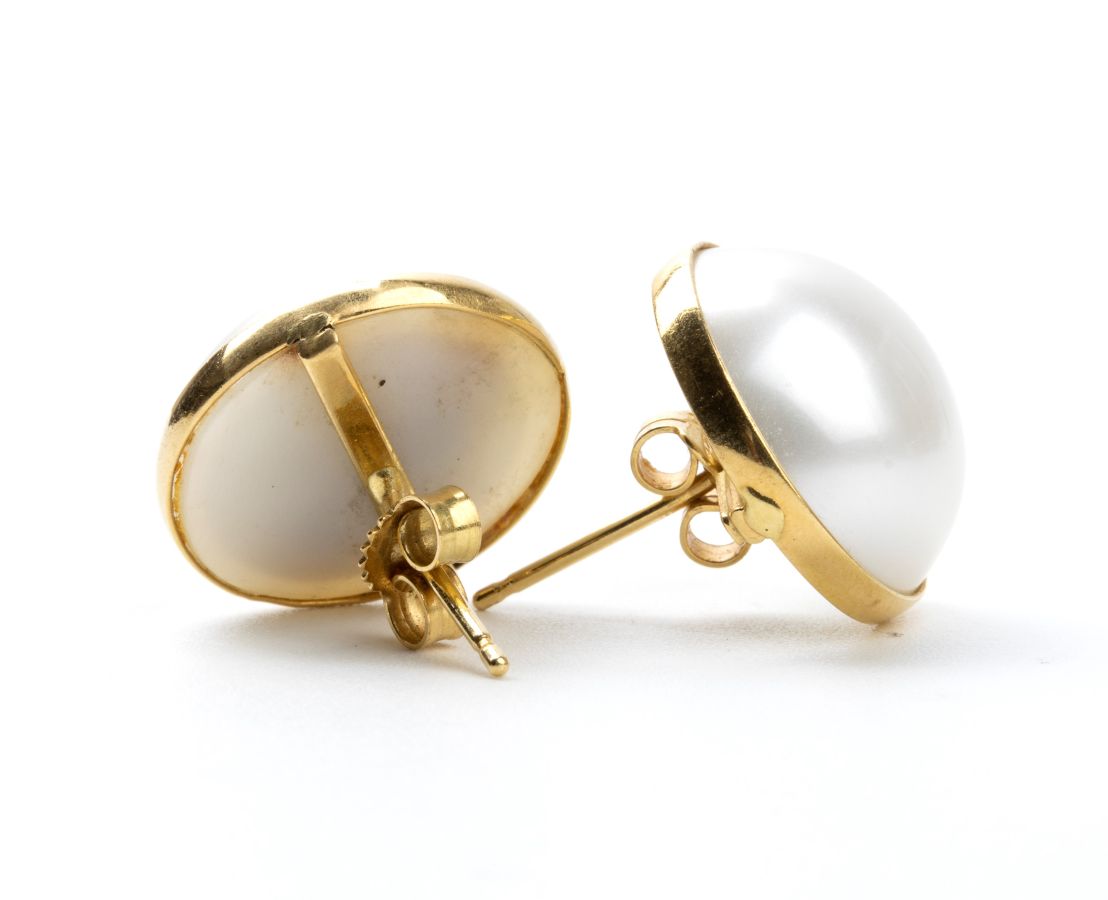 in oro giallo 18k, ciascuno incastonato con perla mabè.