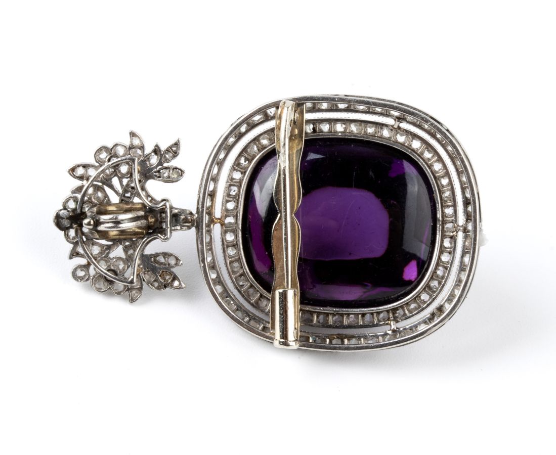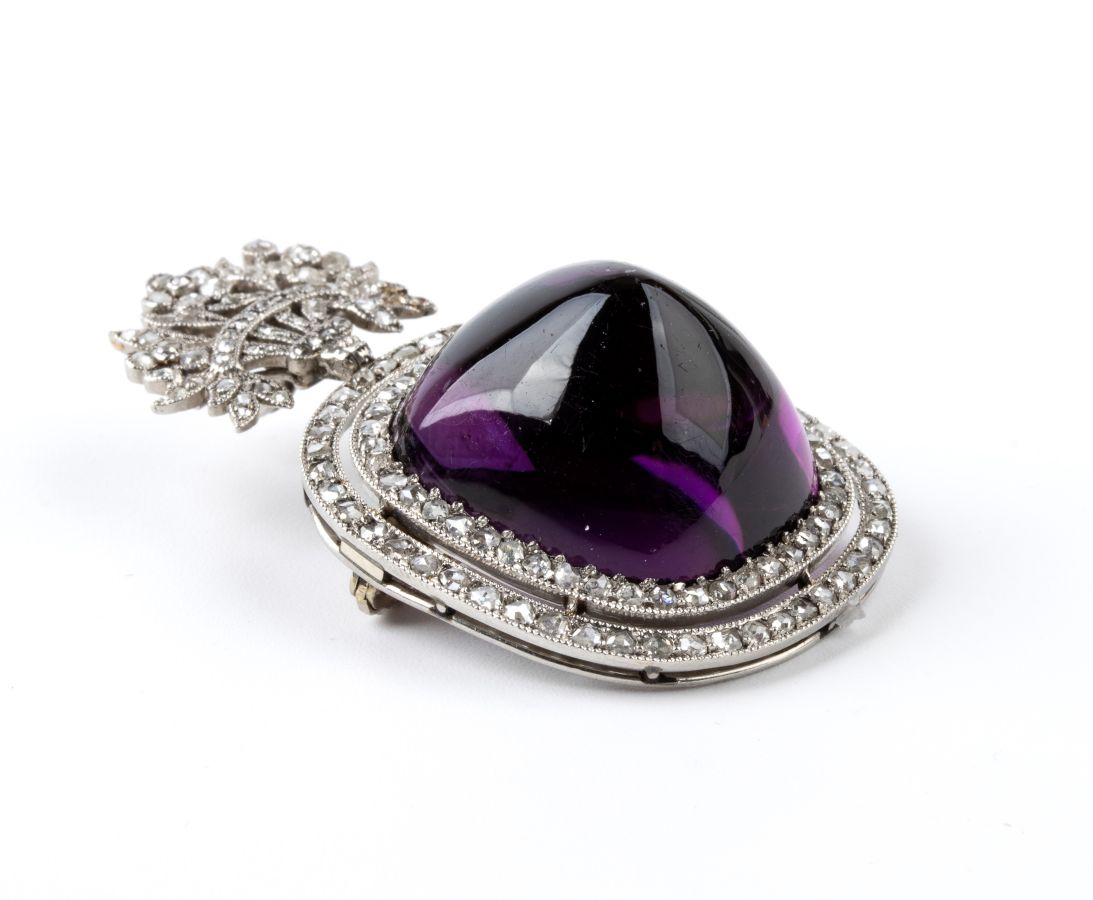 Lotto 251 | Spilla-pendente in oro bianco con grande ametista e diamanti