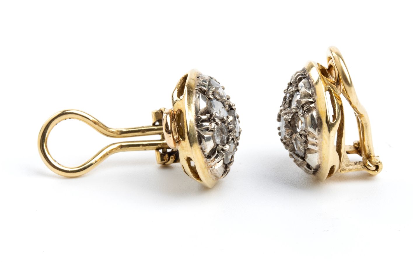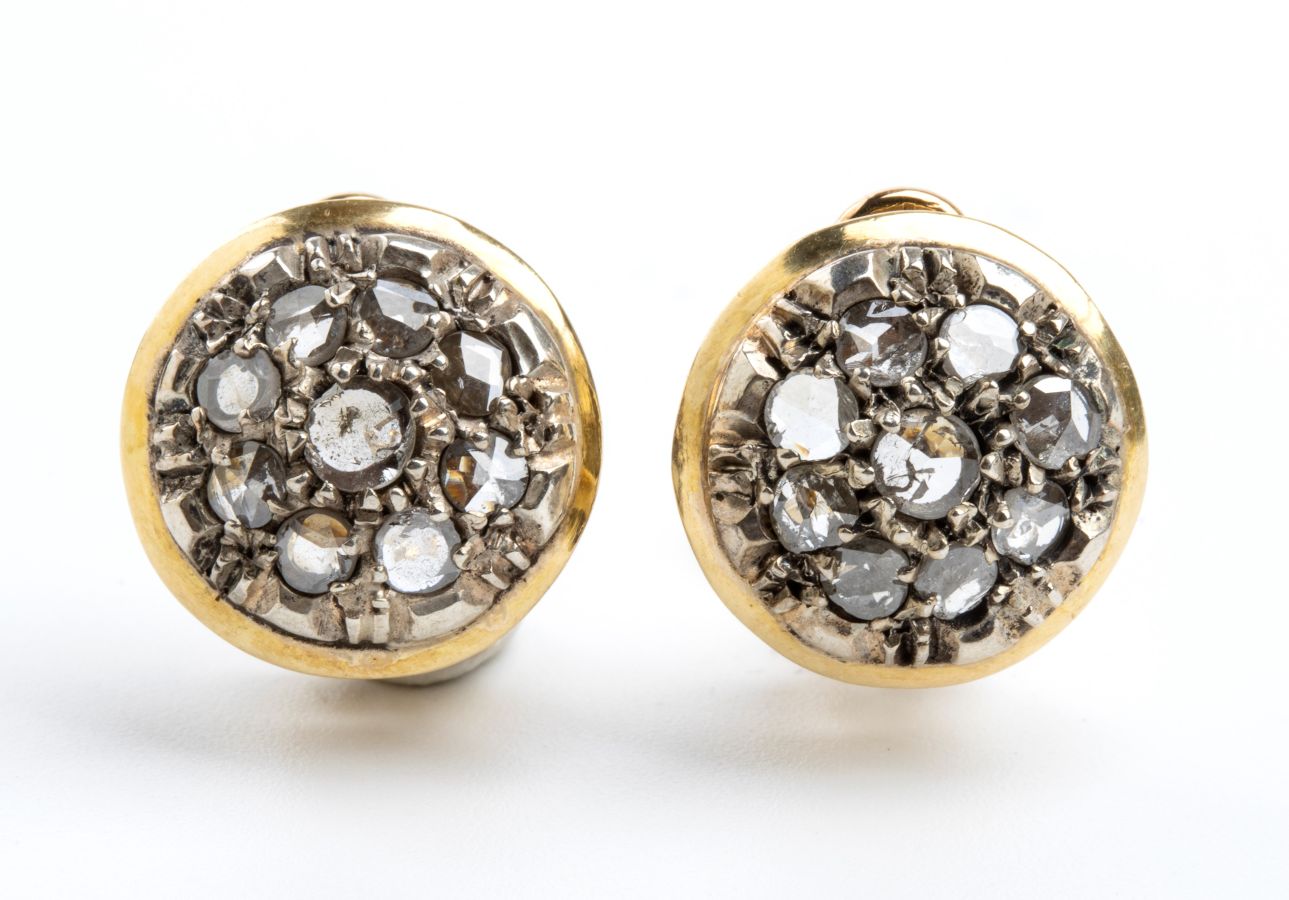 di forma rotonda, impreziositi da n. 18 diamanti di forma rotonda, taglio a rosa. Chiusura a clip.