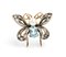 in oro giallo 18k, ali in argento decorate con diamanti taglio a rosa, corpo in acquamarina, testa in perla coltivata.