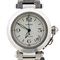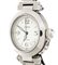 cassa e bracciale in acciaio, quadrante bianco con indici arabi, lancette Cartier luminescenti e datario ad ore 4. Movimento meccanico a carica automatica. Ref. 2324.