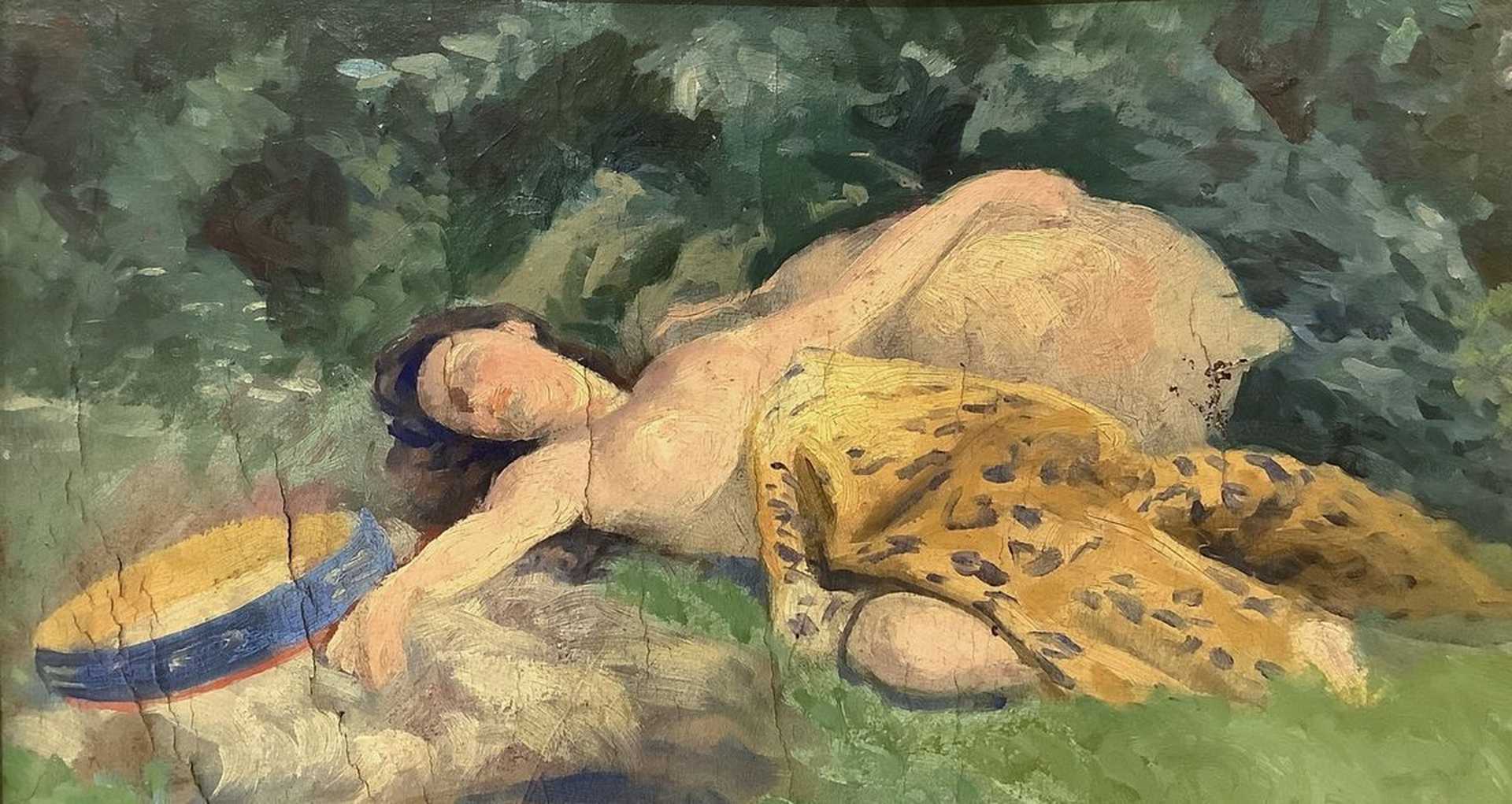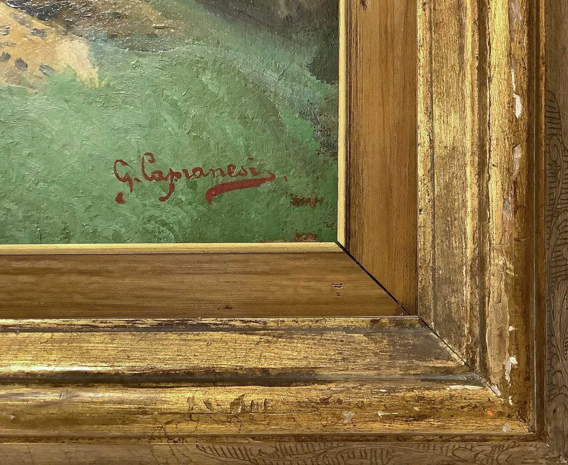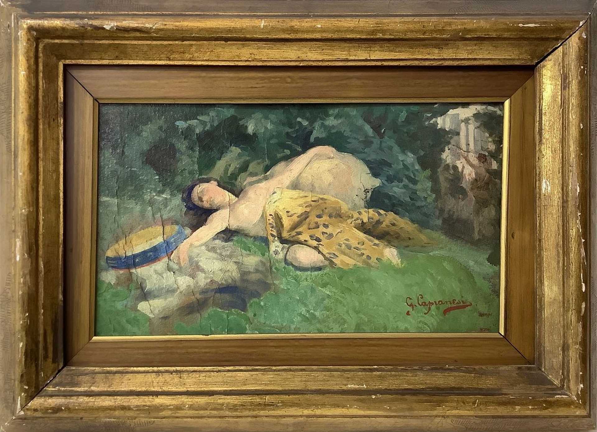 Giovanni Capranesi (Roma 1852-Roma 1921) - Donna sdraiata su prato, nineteen° secolo 18X30 cm, in cornice 33x45 Dipinto olio su cartoncino Firmato in basso a destra G. Capranesi.