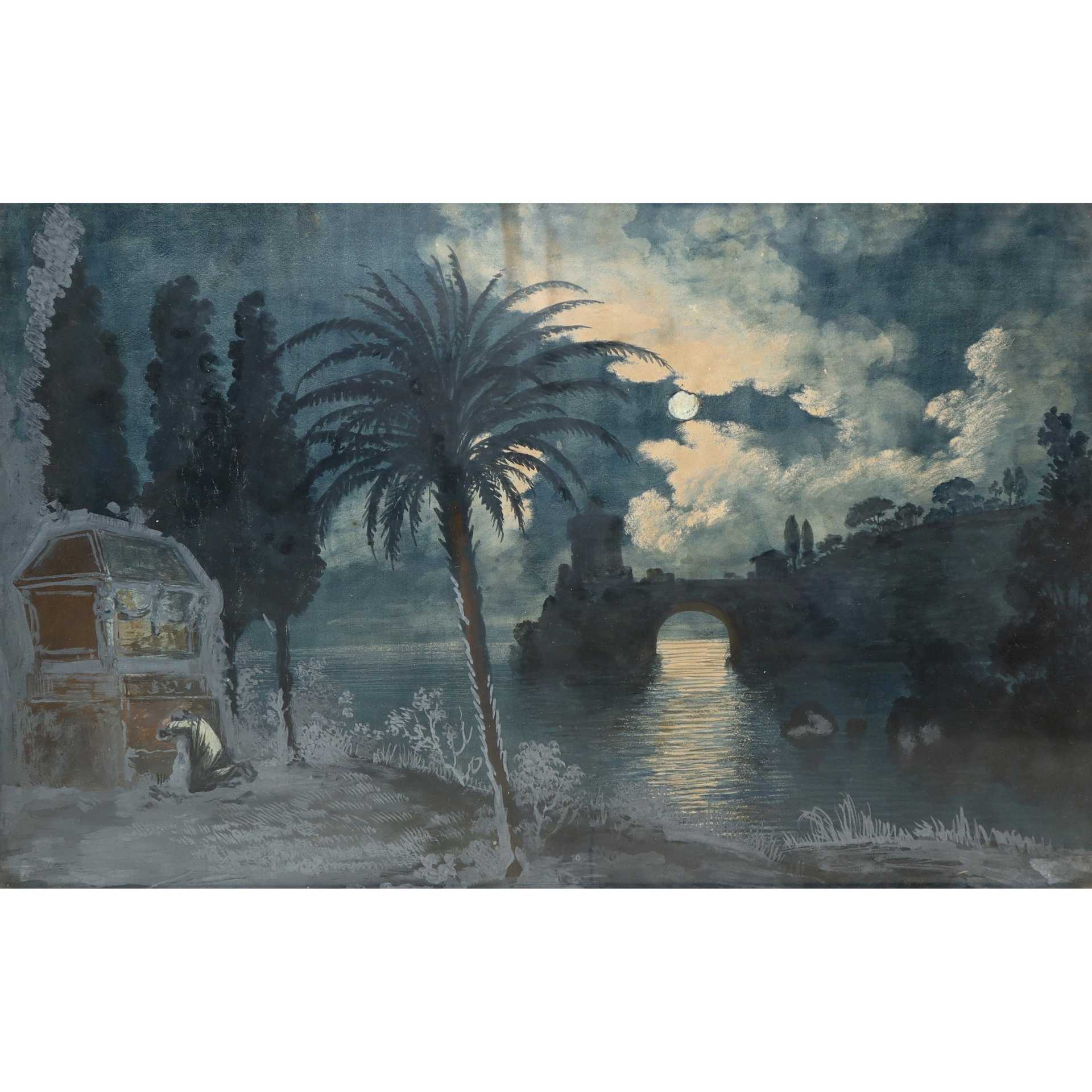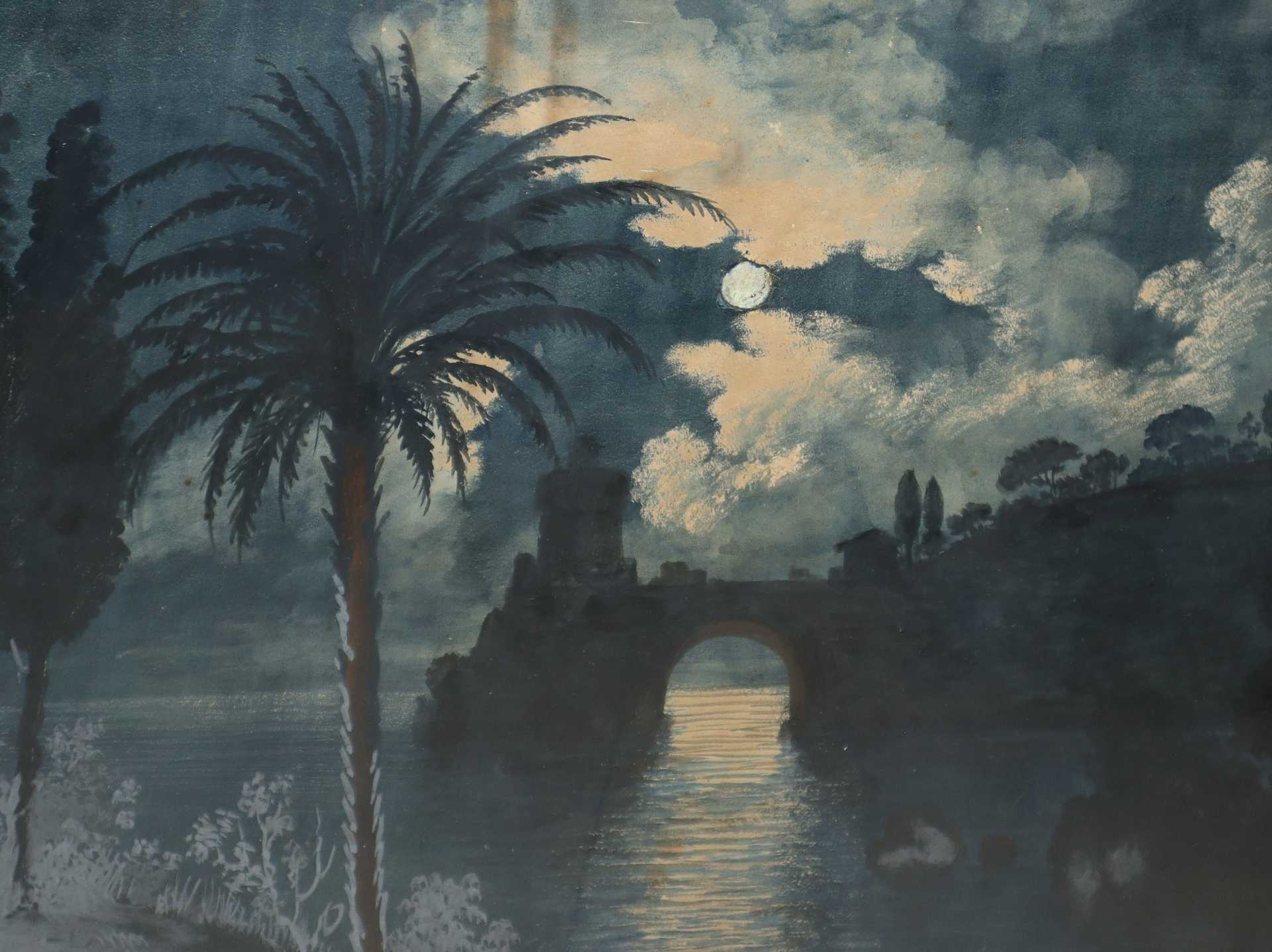 Paesaggio notturno con luna, fine 19° secolo cm h 46X67 in cornice cm h 55X77 Guache su cartoncino