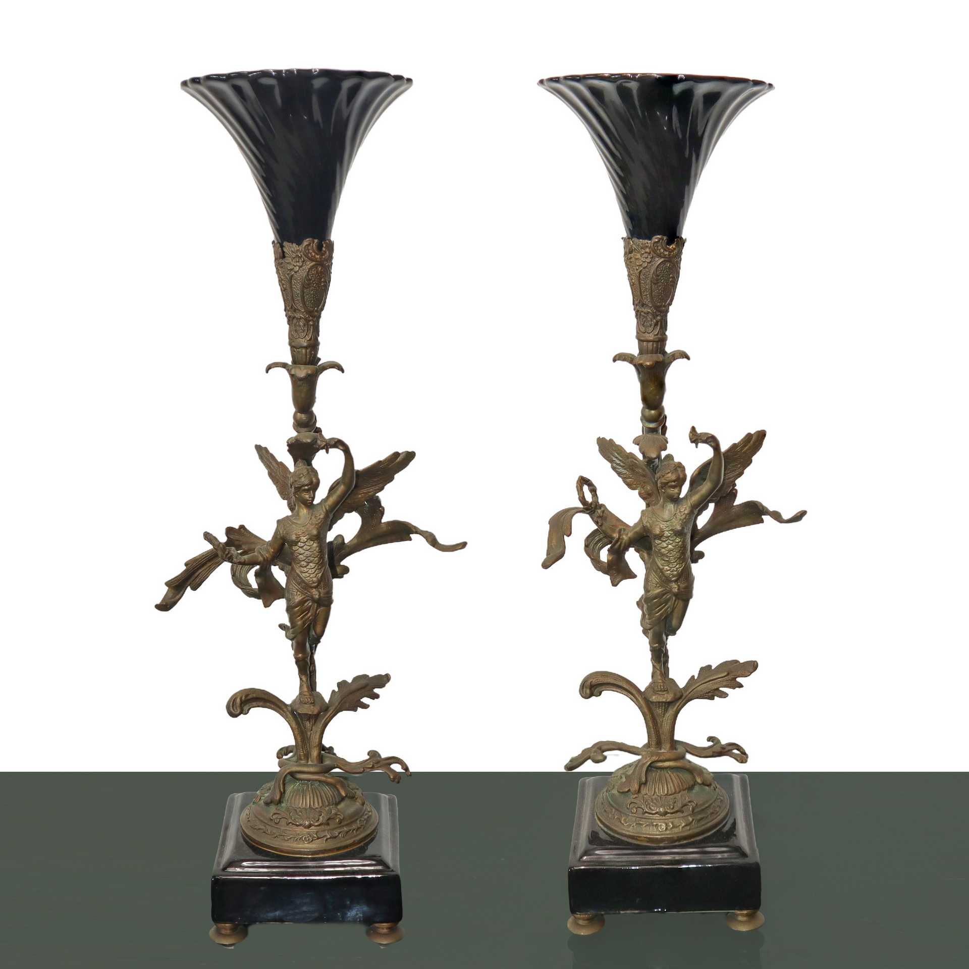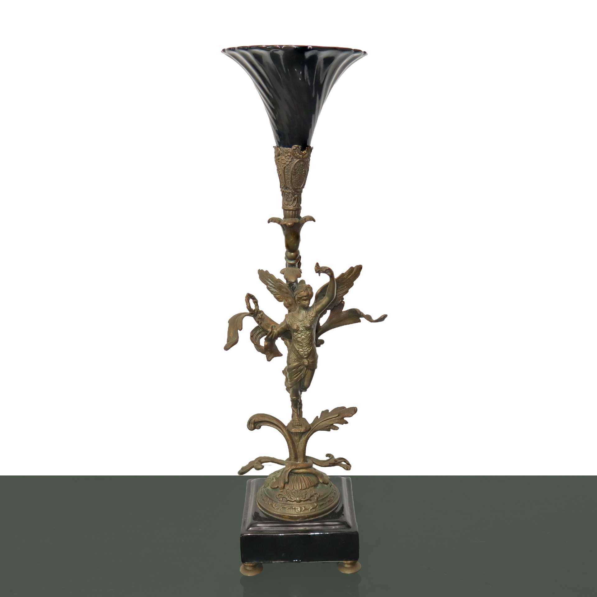 SCULTURA IN METALLO CON CALICE IN VETRO
