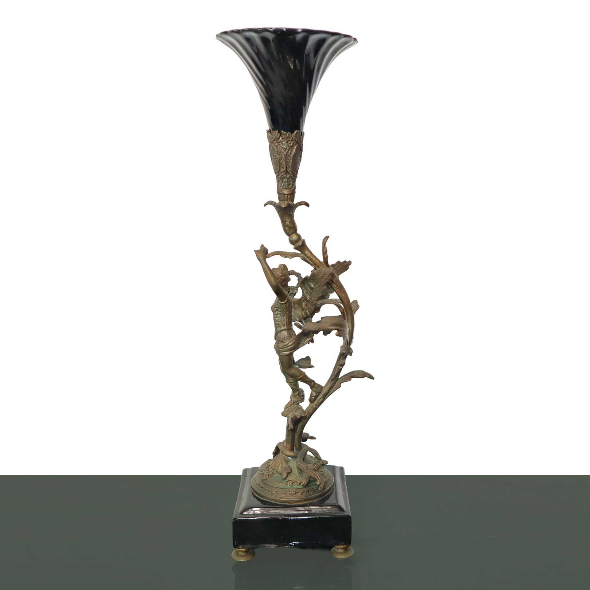 SCULTURA IN METALLO CON CALICE IN VETRO cm 59 con base diametro calice 15 cm Con base in ceramica Con base in ceramica