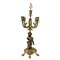 Trittico composto da orologio da tavolo in bronzo patinato oro con putti ai lati, quadrante in porcellana firmato Imperial e coppia di candelieri in bronzo patinato oro a cinque luci retti da basi con putti, nineteen° secolo orologio H cm 48x40 - Candelieri H cm 48 Da revisionare. All'interno firmato Franz HermleDa revisionare. All'interno firmato Franz Hermle