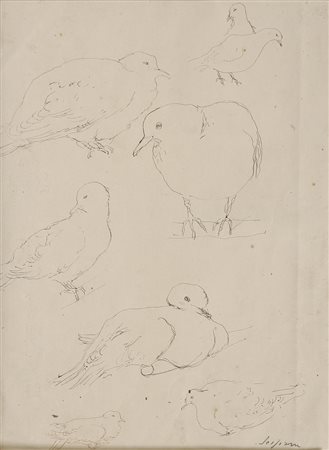 BONICHI GINO (SCIPIONE) (1904 - 1933) Studio per colombe. China su carta. Cm...